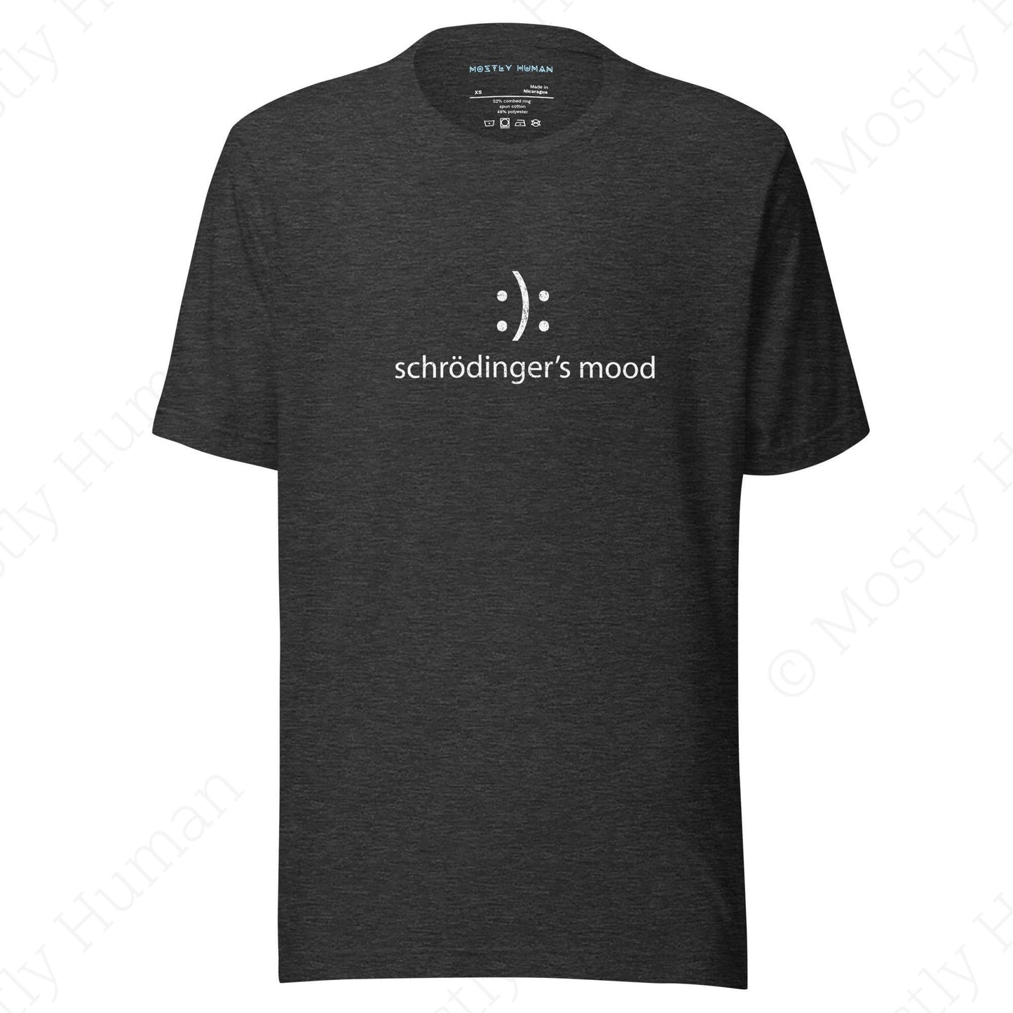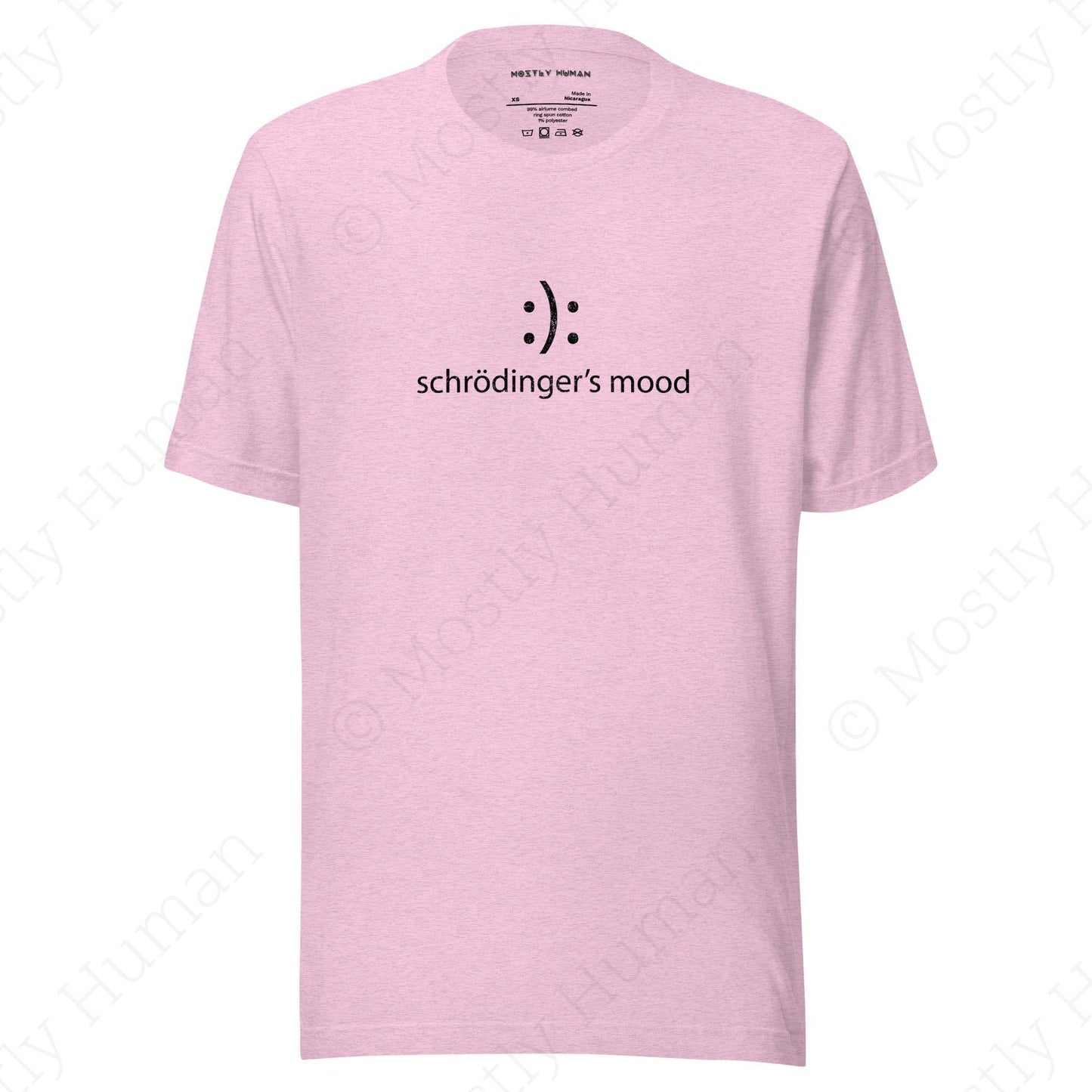 Unravel the mysteries of your mood with this playful "Schrödinger's Mood" design, blending humor and science. Featuring a clever emoticon that’s both smiling and frowning, this t-shirt is a perfect way to express the full spectrum of emotions—just like Schrödinger's famous thought experiment, you can be happy and sad at the same time! Ideal for science nerds, fans of quirky humor, or anyone who appreciates a witty, conversation-starting design. Soft, comfortable, and a definite head-turner, this tee is a must-have for your collection.